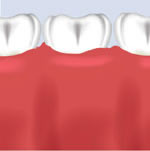 This transparent view of the gums shows the bone loss that has occurred from periodontal disease. |