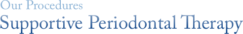 Periodontal Disease is similar to other chronic diseases, such as Diabetes. The key to control is early diagnosis and treatment, followed by prompt ongoing treatment. Supportive Periodontal Therapy helps in gaining control of the disease and increases your chances of keeping your teeth.