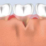 This transparent view of the gums shows the bone loss that has occurred from periodontal disease. |